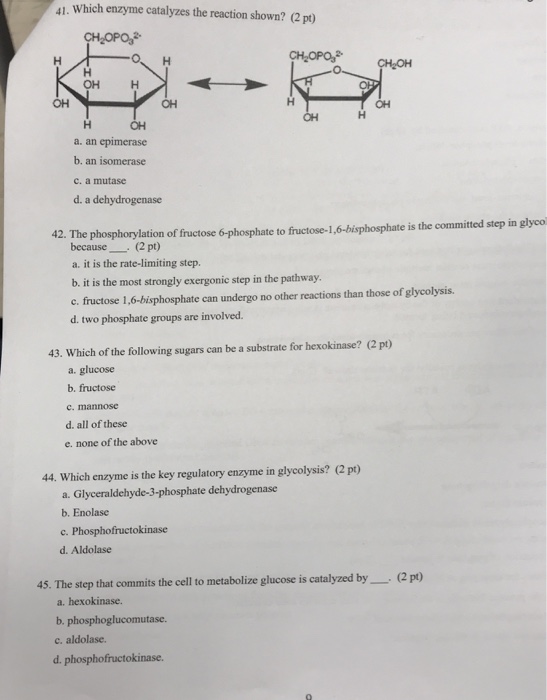 Solved 41. Which enzyme catalyzes the reaction shown? (2 pt)
